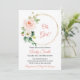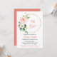 Anpassadets barnduschinbjudan med handdragna vattenfärgbilder av ömtåliga blommor, löv och blad. Perfekt till vår babyduschar.