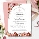 rosa blommigt vattenfärgsflicka Första inbjudan från kommunförbundet med exquisite blommigt arrangemang på övre lämnat hörnet och fält av blommor på kortets grund-sektion. Blommor i vackert trendig rosa, dammig ro, elfenben, persikor och burgundston. Kortet är tillbaka i rosa med blomsterdetaljer på grund. Information om inbjudan till avsnittet "Ceremony" och "Reception". Tillgängliga samordningsprodukter. En del av vår "himmel i Ro" bröllop och evenemangsinsamling.