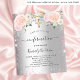 En modern, snyggt och glamorös inbjudan till bekräftelse. En faux silver-metallisk tittar bakgrund med rosa faux glitter, sparkler och blommigtar för rosa. Namn är skrivet med ett modernt handskript i stil. Anpassa och lägg till information.