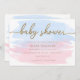 Inbjudan till rosa Blue Watercolor Guld Baby Showe