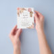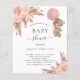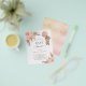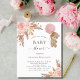 Observera att inbjudan är papper och mycket tunn. Kuvert ingår inte. Om du vill ha mer omfattande inbjudningar (samma design) kan du besöka vår butik. För en modern boho stil babydusch. Vit bakgrund på framsidan. Dekorerad med ro guld och rosa blommigtar, rosor, pampasgräs och en nalle flicka som håller en rosa ballong. Anpassa och lägg till information om namn och party. Tillbaka: A ro guld, rosa, gul, metallisk tittar bakgrund.