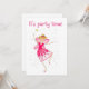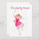 En inbjudan till en part med en mejerivara, klädd i rosa, sprinkling av mejeridamm, från en vattenfärgsmålning av Judy Adamson. Den omvända sidan lämnas tom för att du ska kunna lägga till party-informationen.
