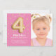 Inbjudan till rosa Foil Balloon Photo 4e födelseda