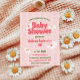 Grattis till att du kom hit med den här söta och återinspirerade babyduschinbjudan. Med fet rosa-typografi, fina vita daisy och mjuk strimlad bakgrund ger den här leksaken charm och värme till evenemanget. Fullständigt anpassade med information som namn, datum, plats och OSA. Idealisk för en dusch i flicka med en roligt, nostalgiskt vibe!