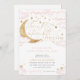 Vänd på, Twinkle Little Star. Vet du hur älskad du är? - En söt rosa- och faux guld babydusch med stjärnor, måne och molndesign.
