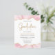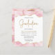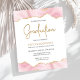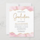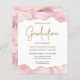 Den här inbjudan till studentfest i trendig har en överkant och grund-gräns med vattenfärgat agatgeod i skuggor av rosa med högdagrar i guld glitter. Ord "Studenten" visas i faux guld glitter i dekorativt modernt handskriftsteckensnitt. Anpassa inbjudan med namn i student i färgad i guld och party i grått i kol på vit bakgrund. En motsvarande rosa- och guld-agate-bild visas på baksidan.