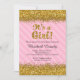 Snygg duschinbjudan till rosa och guld glitter flicka. Det är en tjej, rand.