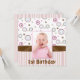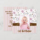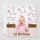 För ett älskligt barns födelsedagsfest finns denna inbjudan i trendig färgskala med brunt, beige, rosa och blått. Roliga, handgjorda mönster med ränder och prickiga cirklar som bakgrund med en fyrkantig ruta för barnets foto. Anpassa all text på framsidan och baksidan för ditt barns minnesvärda födelsedagsfest.