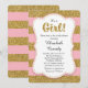 Det är en tjej! Vacker duschinbjudan till guld glitter och rosa rand flicka.
