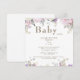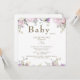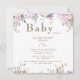 Inbjudan till Blommigten Baby Shower i rosa ros- för vattenfärg. Vit bakgrund. Rundad.