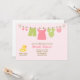 Den här söta Baby Shower-inbjudan har en söt anka och rosa och grönt barnkläder, strumpor och bib på en tvätt-klotsladd. Denna moderna och elegant duschinbjudan är perfekt för alla mamma.