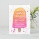 Gå med oss för en glass party! Den här berömvärda födelsedagsinbjudan innehåller en gult- och rosa-vattenfärgpopsikel och handskriven typografi som är modern och trender. Baksidan har vattenfärgen stänk mönster. Alla detaljer utom rubriken "Gå med oss för en födelsedagskalender" är anpassadet.