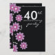 Här är en trendig Ruby 40-årsjubileumspartajInvitation för att göra den stora händelsen speciell och minnesvärd.Lavendelblommor på en svart bakgrund ger en modern och stilren look till din bröllopsjubileum-festlighetsinbjudan.Jag har valt filt papper alternativet för att ge en präglad finish och för att lägga till en touch av klass.Du kan också kolla in fler pappers typer!Inbjudan kan anpassas för alla jubileer - 10, 25, 30, 50 år etc.