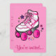 Denna inbjudan till en rullskridsko-födelsedagsfest har en dekorativ rosa skridsko. Låt oss veta om vi kan hjälpa dig att skapa din inbjudan!