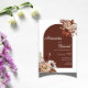 Fira din speciella dag med den här varma och rustiska bröllopsinbjudningen, designad med en rikens brända orange, mjuka boho-blommigtar och en modern bågslayout. Perfekt för fallbröllop, den här designen kombinerar torkat löv, dahlier och jordnära toner för att ge en mysigt, elegant estetisk bild till ceremonin. Designhögdagrar: ・Rik terracotta/bränd orange ・Modern bågform - populär och trendig ・blommigt med höstinspirerad färg ・Elegant blandning av serif och skript typsnitt Underbar för: ・Alla bröllop ・Rustic/boho-teman ・Minimalistiskt och naturligt par ・Utomhusceremonier