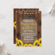 Bröllop Wood Rustic Sunblommor Inbjudan med vattenfärgade blommor. Ändra texten till kostym i bröllopsfesten. Utskrift bakåt ingår.
