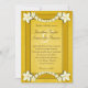 Rustic Guld Blommigt © Sunny Mars Designs. Anpassadets formella vintage i anpassningsbar rostar elegant bröllop inbjudan med gult gräns, moderna söt vita blommor på gammal papper bakgrund.