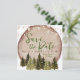 Denna vackra, tvåsidiga skogsmark med skog, förutom datumet då inbjudan kommer att imponera på dina gäster. Den vackra vattenfärgsillustrationen har en rustik träskiva som är lagrad med kanopi ljus och vattenfärgsskog träd i olika eleganter av jägare grönt, mörk choklad brun och nyans. Glöm inte att lägga till förlovningens foto på baksidan. Klicka på Verktygen Redigera med design om du vill göra ytterligare ändringar i inbjudan.