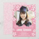 Inbjudan till en studentfest försedd med Japans vackra blommar av körsbär. Skapa dina egna originalkort genom att byta ut ditt barns foto. Utformningen av SAKURA/Cherry-blommarna är en oumbärlig symbol för studenten-ceremonier i Japan. Låt oss deras skönhet denna speciella dag. Fira detta speciella tillfälle med en design som inspirerats av japansk kimono mönster.