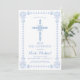 Den här eleganten och den klassiska första heligans gemensamma inbjudan innehåller en ritad kor av blues och vit med en matchande detaljerad gräns. Perfekt för tillfälle i den speciella religiösan kan du anpassa färg och bakgrund efter dina önskemål.
