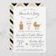 Den här inbjudan till Shake Rattle and Roll Baby Shower är en modern version av ett klassiskt tema. Denna inbjudan till babyduschen är perfekt för mammor att vara, par duschar och dykare party. Konstruktionen har svart och faux guld inslag med ett schevron-stöd för en vacker modern känsla.