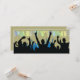 En tunn, ungdomlig design med silhuetterna från en folkmassa i lycklig med händer upphöjda och ord i Party i blått, gult, grönt. Det finns mycket utrymme för personligens känslor på motsatt sida. Passar för båda genderna.Inbjudan är enkel att anpassa med din ordalydelse, ditt teckensnitt, ditt teckensnitt, färg och ditt val av sex papprare typer.