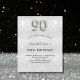 En modern, snyggt och glamorös inbjudan till en 90:e födelsedagsfest. En faux silver-tittar bakgrund, dekorerad med glitter-damm. Anpassa och lägg till ditt namn och information om party. Nummer 90 skrivs med ett stil-skript med ballong.