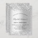 För en elegant 40:e (eller någon ålder) födelsedagsfest. En faux silver metallisk tittar bakgrund. Dekorerad med faux glitter. Anpassa och lägg till information om namn och party. Namn är skrivet med ett handskript i stil