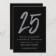 Fira 25 år av äktenskap (eller något annat!) med denna svarta och falska silverglitter-inbjudan med en stor stiliserad 25