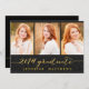 Handskrivet fotokort som bjuder in din familj och vänner till din dotters studentfest. Simple Collage Glitter Studentfest Call for 2014. Utformning av Elke Clarke © Besök vår butik www.zazzle.com/monogramgallery* om du vill ha mer design och stilar. En enkel text i handskrivet skrivet skript i guld överlägg på en svart glitter-bakgrund (utskriven fotoeffekt) med orden "2014 Student" med tre fotosamlingskonstruktioner. Ersätt exempelfoton med egna. Svarta och guld färger.