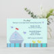 En söt scen med blå segelbåt med liten gult anka i vatten och blå fåglar i himlar. Anpassa med all information om babyduschen efter behov.