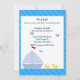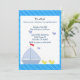 En söt scen med blå segelbåt med liten gult anka i vatten och blå fåglar i himlar. En blå diagonal stripe gräns. Anpassa med all information om babyduschen efter behov.
