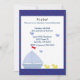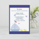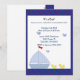 En söt scen med blå segelbåt med liten gult anka i vatten och blå fåglar i himlar. En blå och röd diagonal stripe gräns. Anpassa med all information om babyduschen efter behov.
