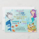 Sjöjungfru och haj syskon födelsedagsinbjudan. Sjöjungfru och hajfödelsedag, inbjudan. Storlek är 5x7. Om du vill ha andra matchande artiklar, kan du kontakta mig om du vill ha frågor eller anpassningsbar. Tack.