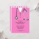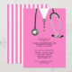 Kreativ sjuksköterska i studenten inbjudan med rosa sjukhusbuskar och stetoskop. Redigera text om du vill skapa unika inbjudningar till sjuksköterskepartiet eller gradmeddelanden.