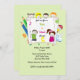 Börja året rätt med en "back to school"-fest med dessa roliga inbjudningar. Den visar sju barn som rullar ut en välkomstskylt omgiven av pennor, alfabetbokstäver och siffror.