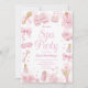 Vacker i rosa SPA-dag födelsedagsinbjudan med skönhetselement från spa. Söt badrock, rosa band, nagellack, borstar, rosa handdukar, ljus och tofflor. All text är redigerbar. Perfekt för en pyjamasfest, sömnfest eller pyjamaspárty.