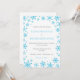Ett blått snöflingor-tema dekorerar de vackra vinterbröllopsinbjudningarna. Perfekt för ditt snövinter under firande. Textteckensnittet färg, storlekt och placering kan ändras genom att klicka på knappen "Anpassa".