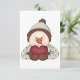 En söt tittar snögubbe klädd i hatt med en morotnäsa som håller ett kärlek hjärta. Utformningen av snögubbe kärlek ser underbar ut på den här inbjudan