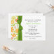Elegant pars barnduschinbjudan utförd i vitt, med söt gult och grönt blommigt grafik och ett band med grönt och bog, dekorerar inbjudningens lämnat sida. Text är redo att anpassa, till kostym som du behöver i baby. Att charma andra än gender som föräldrarna ska vara kommer att värna om.