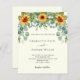 En bakgrund av elfenbensbaserad färgad som dekoreras med solblommor, eucalyptus greenery. Anpassa och lägg till information om namn och party. 1 lakan = 1 inbjudan tryckt kant till kant.