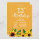 Inbjudan till solros 15:e födelsedag. Blommigt Flowers and Gult Background. Land Vintage Retro. Barnflicka på födelsedagen. 12:e 13:e 15:e 16:e 18:e 20:e 30:e 40:e 60:e 70:e 90:e 100:e, i alla åldrar. Utskrivbar digital teknik. Om du vill göra ytterligare anpassningar klickar du på knappen "Anpassa" och användor verktyg som är utformat för att ändra mallen.