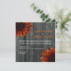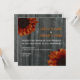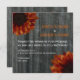 Ett höstbröllop med ett bakgrundsfoto av barrträ. Antikalinspirerade foton av solflöden överst till lämnat hörn och höger i grund. Anpassa den matchande texten med information om händelsen. En enda blomma på baksidan i mitten över ladugårdens bakgrund.