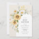 Baby Shower-inbjudan med en bågad ram av vattenfärgade solblommor och daisy. Anpassa med din information så att mamma blir det. Klicka på "klicka för att anpassa ytterligare" om du vill ändra teckensnittet stil, storlek eller färg.