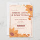 Gratulera till kärlek med den här charmerande solrosinbjudan. Utformningen har varma autumntoner, vackra accenter för blommigt av orange och en ren modern layout som fångar kärnan i ett mysigt och elegant firande. Perfekt för trädgård, utomhus eller fallbröllop. Perfekt för: Rustic eller boho bröllop Hösten eller utomhusceremonier Par som vill ha ett varmt, välkomnande estetiskt