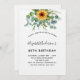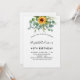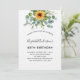 För en 40:e (eller någon ålder) födelsedagsfest. En vit bakgrund som dekoreras med vattenfärgade solblommor, eucalyptus greenery. Anpassa och lägg till ditt namn och information om party.