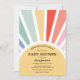 Baby Shower-inbjudan med en bågad ram med sol-strålar. Anpassa med din information så att mamma blir det. Klicka på "klicka för att anpassa ytterligare" om du vill ändra teckensnittet stil, storlek eller färg.