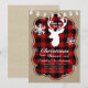 Julmiddagsbjudan med hjort, lumberjack-tema och röd buffelbakgrunden. Perfekt om du planerar för en julafton party.