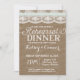 Rustic repetitionsmiddagsinbjudan, shabby chic snöre och rustik burlap med ett accent band.