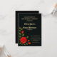 Ange tonen för en oförglömlig kväll med den här Ro gotiska Bröllop-inbjudan till repetitionsmiddagen. Den här designen har svarta riker, fet röd ros och ornate guld-text och kompletterar perfekt gotisk, romantisk eller Halloween-temed bröllop. Elegant och dramatisk, den här inbjudan erbjuder en mycket väl samordnad syn på resten av din bröllop-svit. Perfekt för att samla dina närmaste vänner och familj för att fira före den stora dagen är det ett fantastiskt sätt för gästerna i inbjudan i stil.